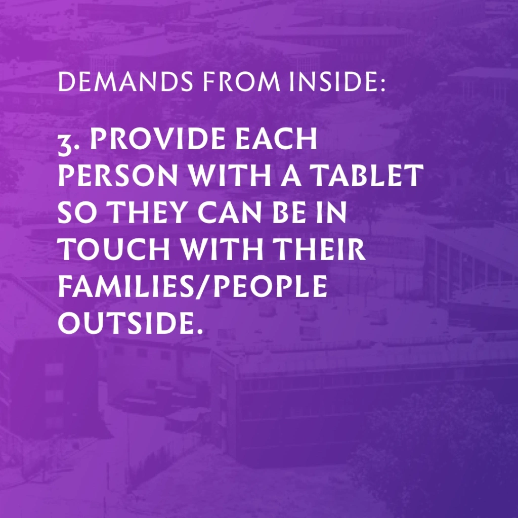 - Provide each person with a tablet so they can be in touch with their families and people outside.