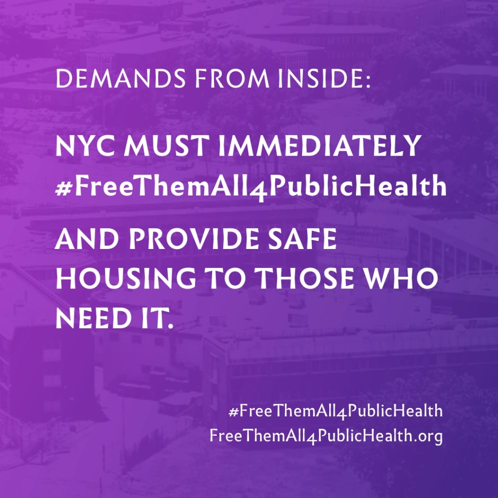 FREE THEM ALL: They are being held before trial and should not be incarcerated! NYC must immediately #FreeThemAll4PublicHealth and provide safe housing to those who need it.
